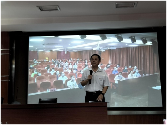 在讲座开始前,学校党委副书记、纪委书记朱其祥同志作了讲话。恰逢第37个教师节来临之际,朱书记首先代表学校杜安国书记、卢坤建校长和学校向全体教师致以亲切的问候和祝福,祝大家节日快乐。作为广东职业教育发展的见证者和老领导,朱书记有着深厚的职教情怀,对广轻大家庭的发展往事如数家珍,娓娓道来,他满怀深情地向教职员工介绍了我们这个大集体的往事和优势,让新广轻人更加了解广轻,认识广轻,更快融入广轻。主持人郑主任在总结中感慨,“我爱广轻”是朱书记发自内心的号召,朱书记对广轻和职业教育真正是“情难忘,恩难却,根难断”。